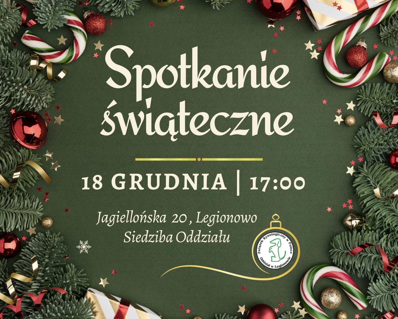 zapraszamy serdecznie na świąteczne spotkanie, które odbędzie się 18 grudnia 2025 o godzinie 17:00 w siedzibie naszego Oddziału przy ul. Jagiellońskiej 20 w Legionowie.